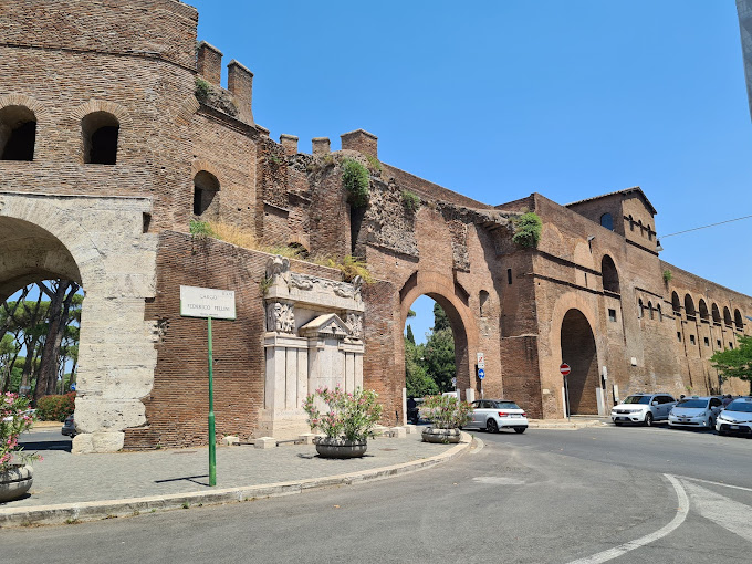 バイクは松の木立や小さなアパートメントが並ぶ住宅街へと向きを変え、急な坂道に入りました。アウレリアヌス城壁の南門の一つ、サン・パンクラツィオ門の前で右に進んだのではないでしょうか。