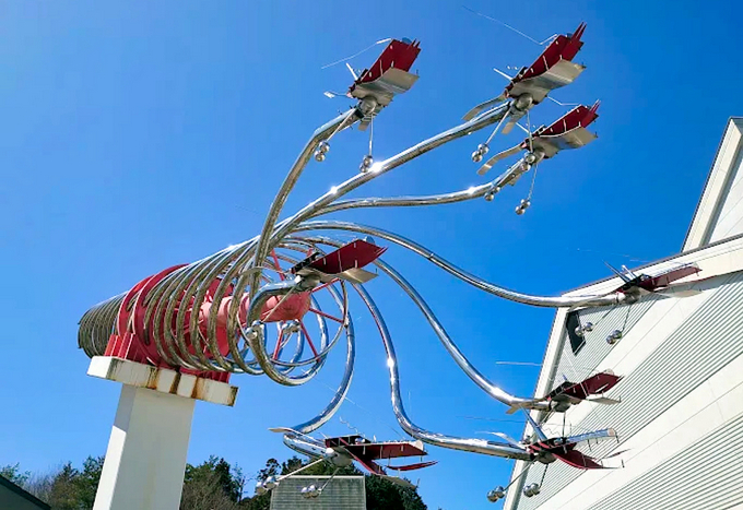 こちらが銀色に輝くヤマタノオロチの現代的なモニュメントです。