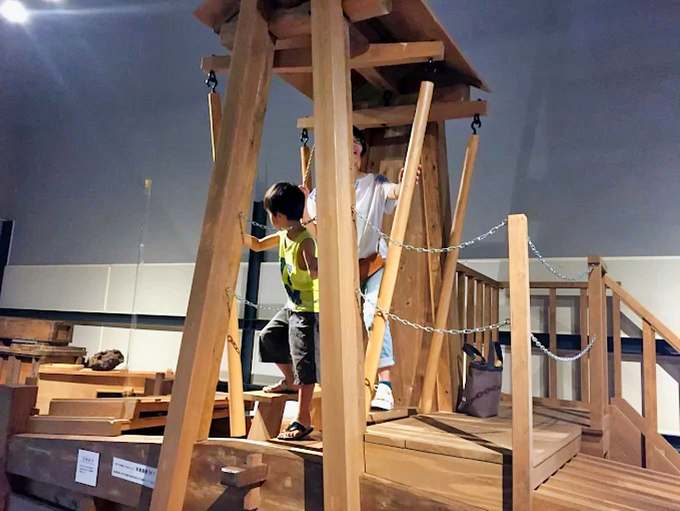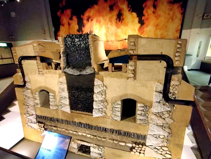 雅も圧倒されたという、踏鞴炉の地下施設の巨大で複雑な実物大断面模型は必見の価値があります。地下構造を構築することを「たたらを打つ」というそうですが、深いところで5m、浅いところでも3m程度掘り下げるようです。