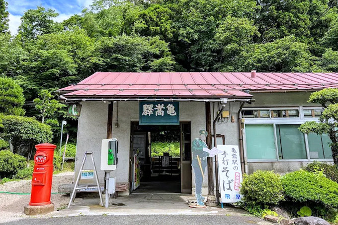 1934年開業で、無人の改札を抜けた古ぼけた駅舎には、蕎麦屋「扇屋」が入っており、石臼で挽いた手打ちそばが食べられるようです。