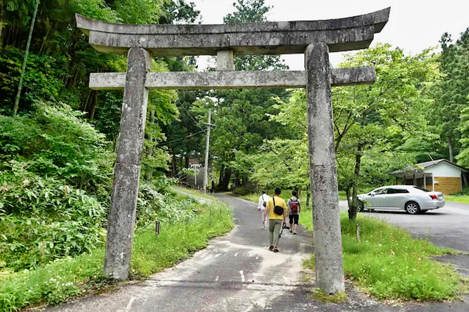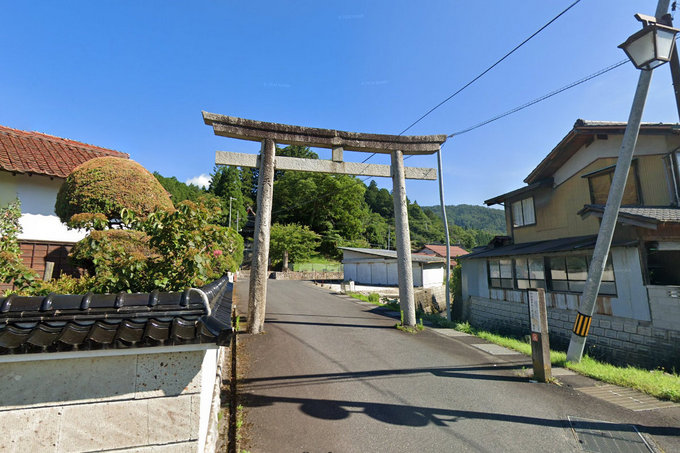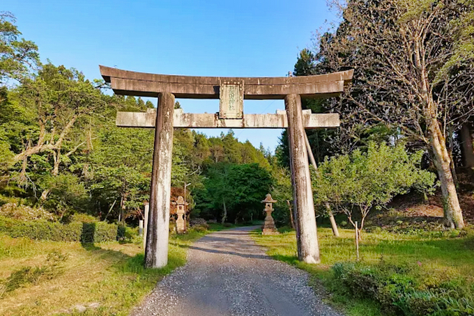 県道108号線(印賀奥出雲線)を南東に進むと、左手に「五十猛尊 御領地」という社号標と大鳥居が見えてきます。奥出雲町大呂という場所にあります。