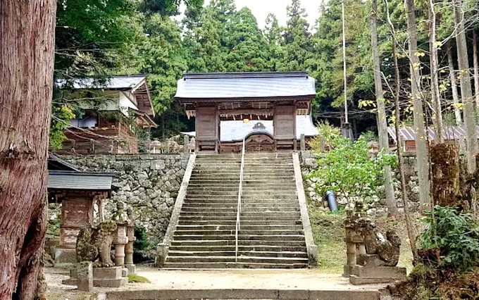 奥出雲町横田の伊賀多気神社は、『出雲国風土記』(仁多郡273頁)に「伊我多氣神社」として登場し、伊賀多気神社略記によれば、垂仁天皇の時代の創建と伝わり、主祭神は素戔嗚尊と共に降臨した子神の五十猛命(いそたけるのみこと)で、素戔嗚尊と大己貴命(おおなむちのみこと=大国主命)が相祀されています(作中には、素戔嗚尊も主祭神とし、仁徳天皇である大鷦鷯命(おおささぎのみこと)、素戔嗚尊と天照大神との間の子神の熊野櫲樟日命(くまのくすびのみこと)も相殿神としていますが)。