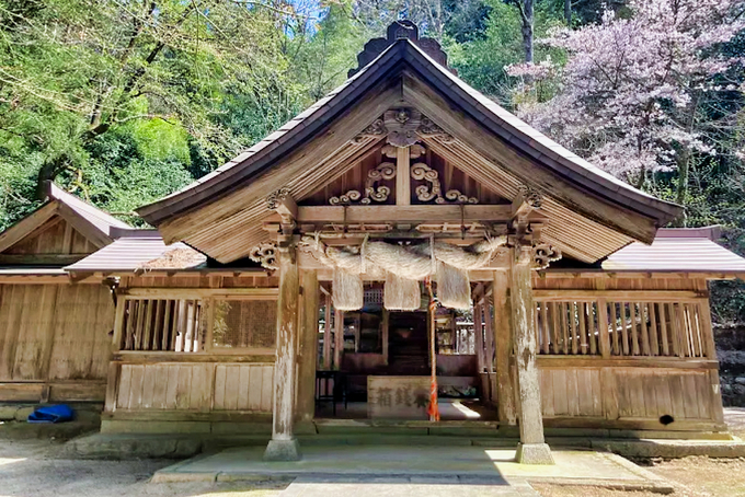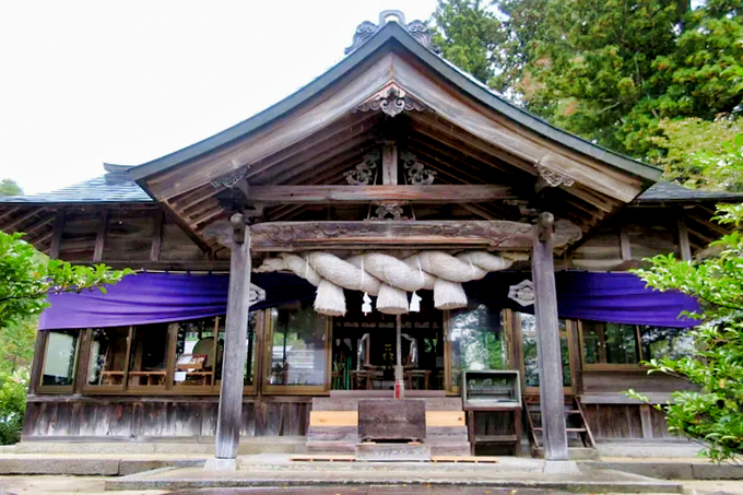 こちらが雅が参拝した拝殿です。鬼神神社(おにがみじんじゃ)は、由緒書きによると、主祭神の五十猛命と素戔嗚尊のほか3柱(こちらによれば、大名牟遅命(大国主命)、 大鷦鷯命、熊野櫲樟日命とのこと)が合祀されており、『延喜式』にある「伊我多氣神社」で(『出雲国風土記』の「伊我多氣神社」でもあるようです)、永正16年(1519年)に焼失した「上宮 伊我多氣神社」に相当するようです。