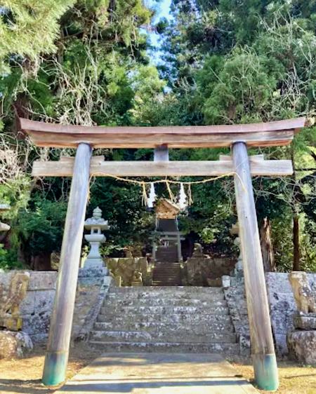 長い石段の途中にも、注連縄が掛かった石鳥居があり、こちらなのかもしれません。こちらの左右には勇み型の狛犬が置かれています。