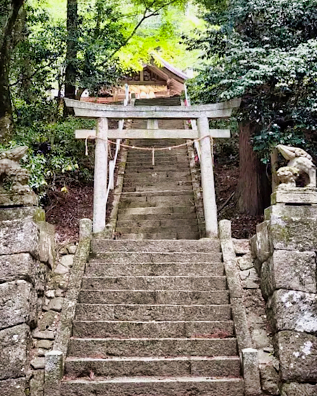 雅が上った、本殿への50段ほどの石段です。階上では随神門が出迎えます。