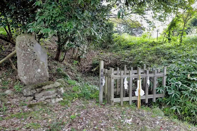 「御領さん」と呼ばれる五十猛命御領地は、石碑の刻字によると、総面積2267㎡、築土の高さ10mの長円墳とのことです。