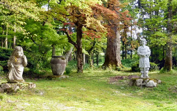 緑の庭には、素盞鳴尊と雅がおかめ又はおたふくのようだといった奇稲田姫命の像もちゃんとあります。
