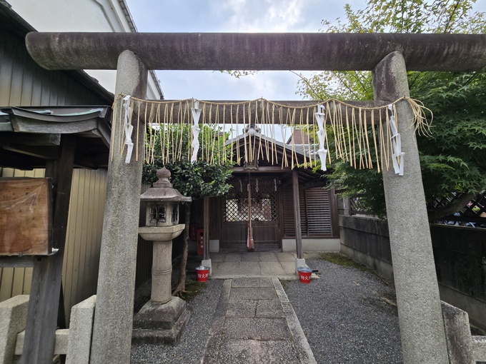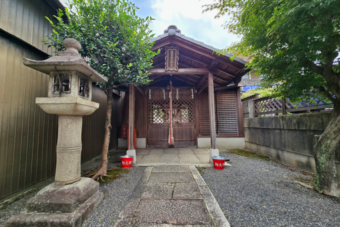 東西の細い路地の途中に、「幸神社」の扁額が掛かる石の明神鳥居が見えてきます。