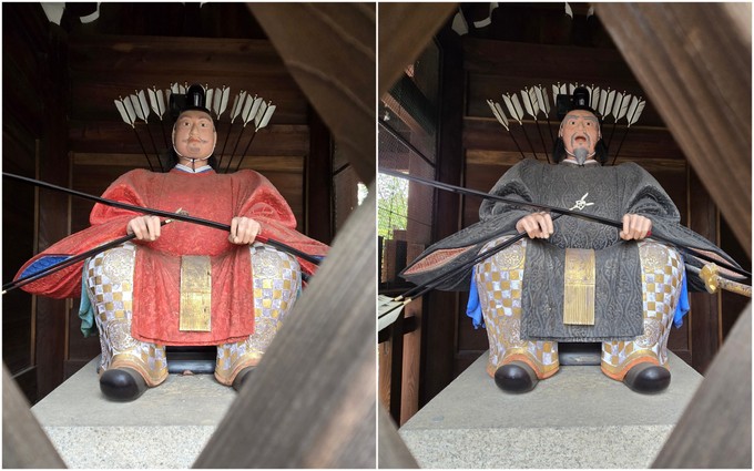 門の中には弓を携えた随身(矢大臣・左大臣)の神像が安置されています。