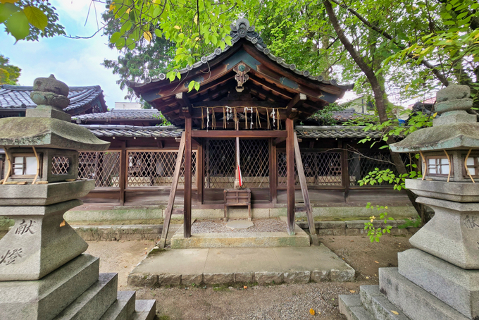短い参道の奥に、桟瓦葺きの拝殿があります。