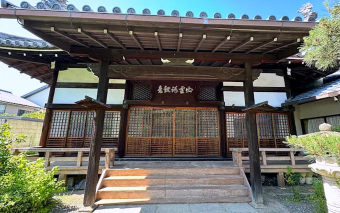 門には「浄土宗 出雲寺」の表札が掛かり、庇の下の左端に「厄除阿彌陀如来」と刻まれた寺号標が立っています。