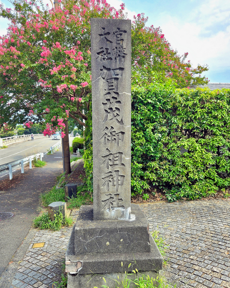交差点に到着すると、南側には、これから向かう「賀茂御祖神社」の道標が立っています。