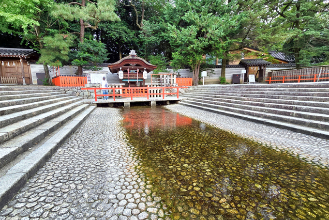 到着した御手洗池には、水際まで降りることのできる10段ほどの石段が両岸にあります。