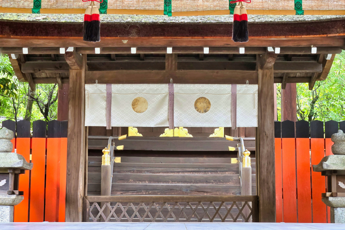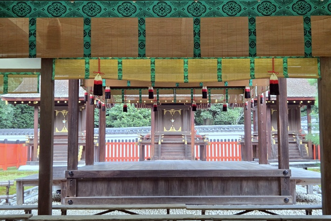 檜皮葺き、一間社流造りの本殿の前面には白い神社幕が下がった拝所が設けられています。雅が社内での重要さに驚いたのも当然、現在の社殿は、寛永6年(1629年)の式年遷宮に際し、先(天正9年(1561年)造営)の本宮本殿を移築した、下鴨神社の中で最も古い社殿で、国の重要文化財に指定されています。