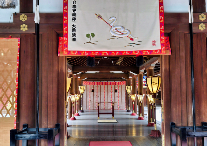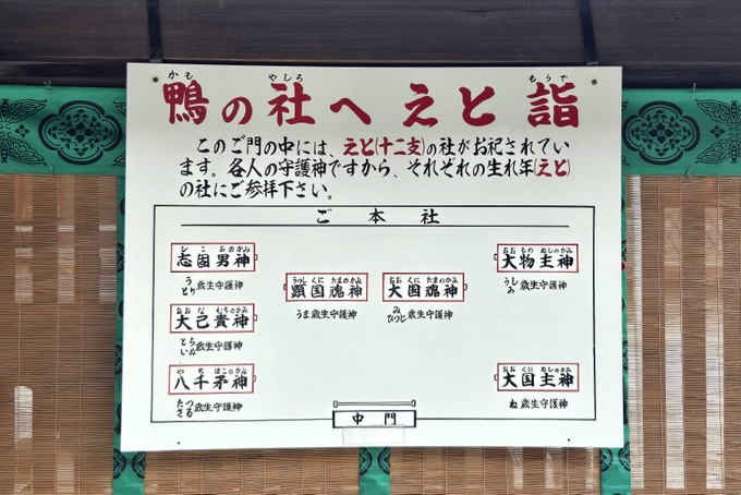 弊殿前には、小さな七つの言社(ことしゃ)が配置されており、干支毎に大国主命の別名の守護神が割り当てられ、自身の干支に応じて参拝するようになっています。