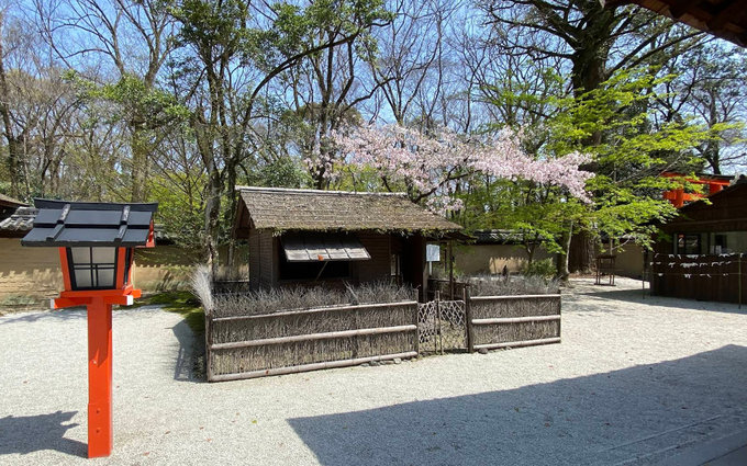 作中にあるように、河合神社は、随筆『方丈記』を記した鎌倉前期の歌人、鴨長明ゆかりの神社であり、雅たちが訪れたころは、境内右側に長明が晩年過ごしたと言われる方丈庵の復元が展示されていました。現在は、糺の森に整備された鴨社神宮寺の旧跡の庭園内に移設されています。