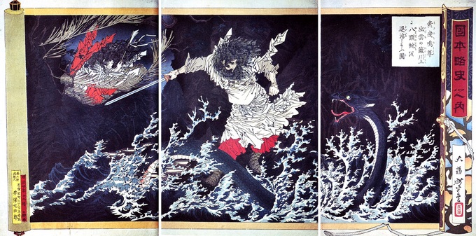 千鶴子は、雅に、字統からわかった出雲井於神社の「井於」の意味を、首や足に枷を掛けられて、死鳥の羽がかかった縄をめぐらされ、悲しみに心が晴れることのない出雲の神(素戔嗚尊)を祀っているということだと説明して、だから周囲の木々が全て「疼」になるのだと話します。そして、『日本書紀』神武天皇2年の条(231頁)に葛野主殿県主部(かどのとのもりあがたぬしべ)とある人々が祖神として祀ったとあり(出雲井於神社の由緒書)、葛野主殿県主は八咫烏の子孫で、賀茂氏と同族とみられていることから、出雲臣と賀茂氏との関係が、この近辺に彼らの痕跡が多く残されている理由も含めて分かってきたと告げるのです。
