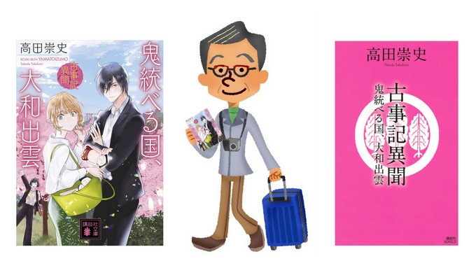 今回(第4部)の旅のガイドブックは、民俗学を学ぶ大学院生の主人公橘樹雅(たちばな みやび)が研究テーマの本質を探求するためゆかりの土地を巡る『古事記異聞』シリーズの4作目『鬼統べる国、大和出雲 古事記異聞』で、当初2020年11月に講談社ノベルス『古事記異聞 鬼統べる国、大和出雲』として刊行されていた作品で、文庫化(2022年5月)に伴い、主要な登場人物に松本救助作画によるキャラクターイメージを与え、題名の主複を入れ替えて発行されたものです。